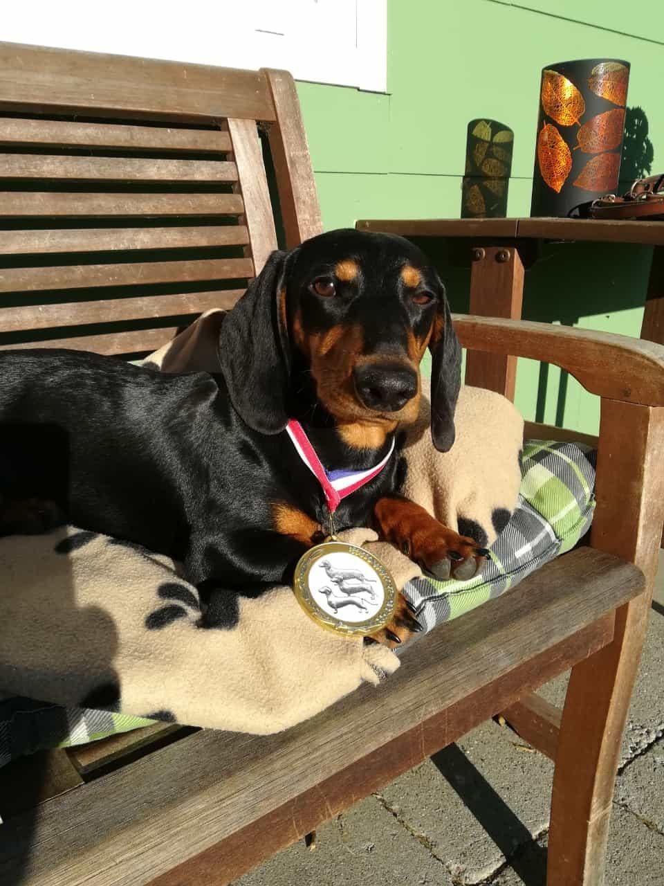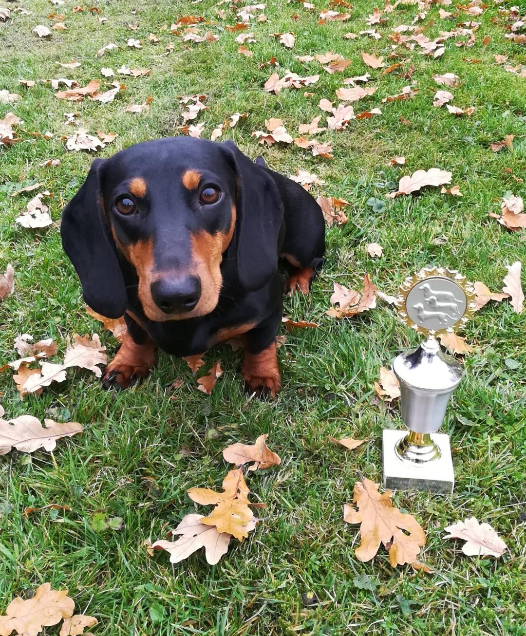 Igor war mit einem anderen Teckel Punktgleich. Da er aber der jüngere Hund war, wurde er auch in dieser Prüfung Tagessieger.